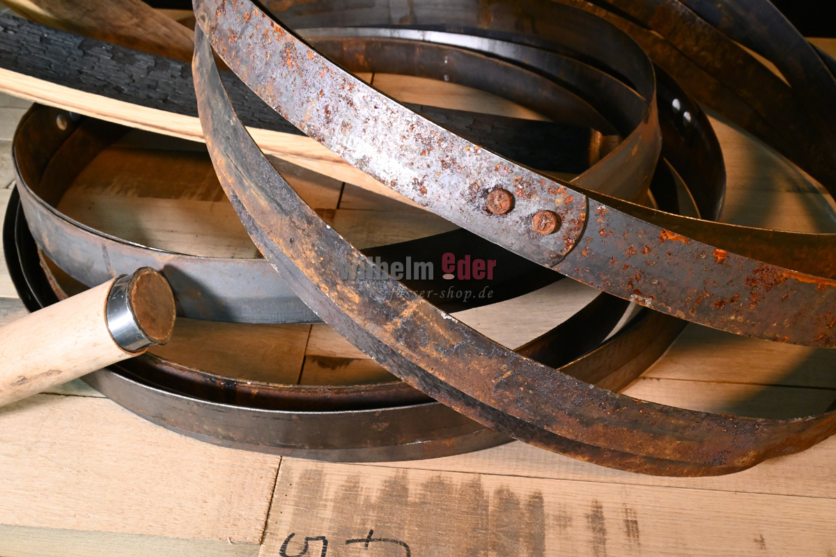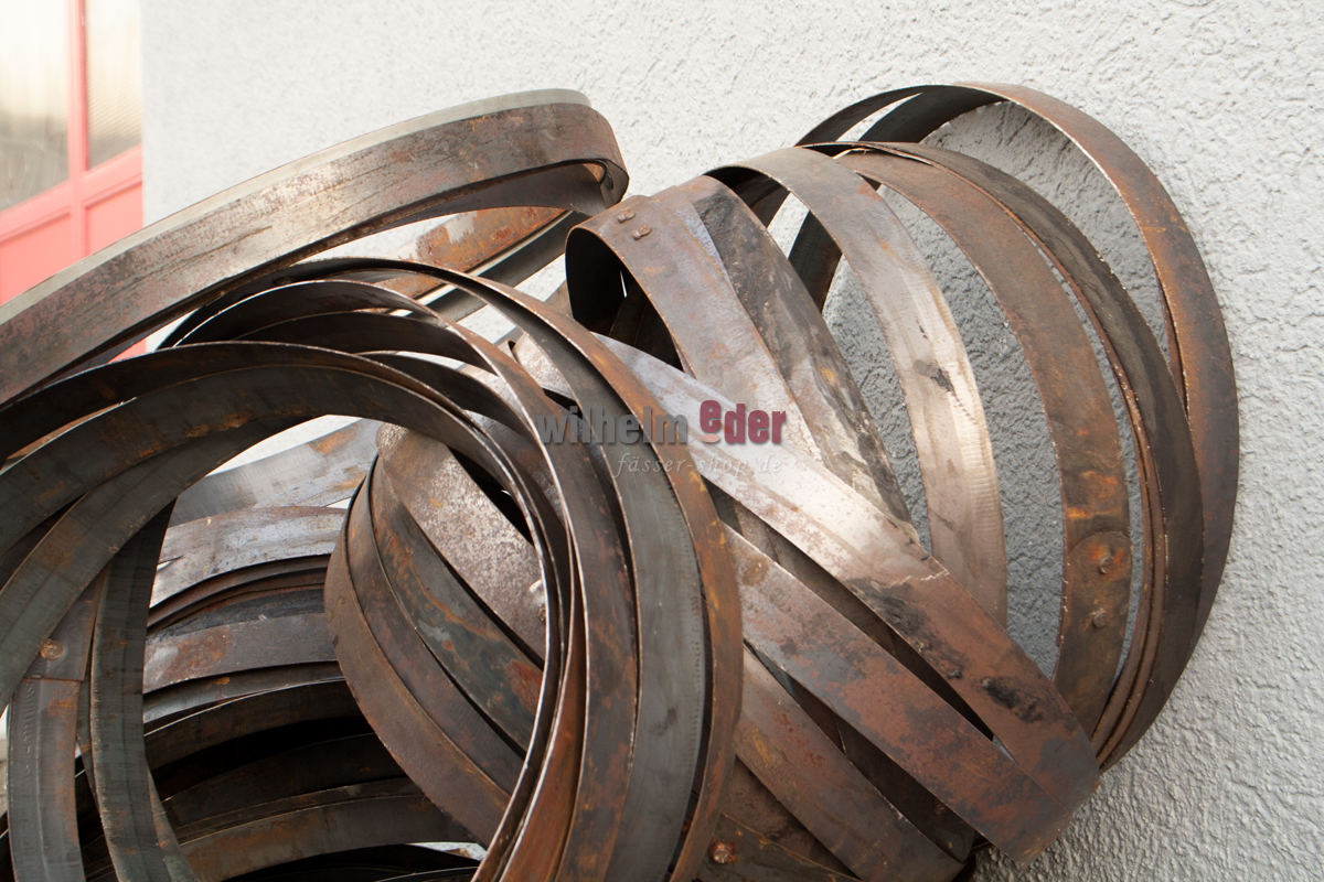 Anciens cercles en métal. Les cercles montrent de la rouille faible ou forte et rapellent le charme du passé. Idéal comme décoration dans le jardin ou le bar à la cave. De plus les bricoleurs peuvent s'amuser avec ces cercles.