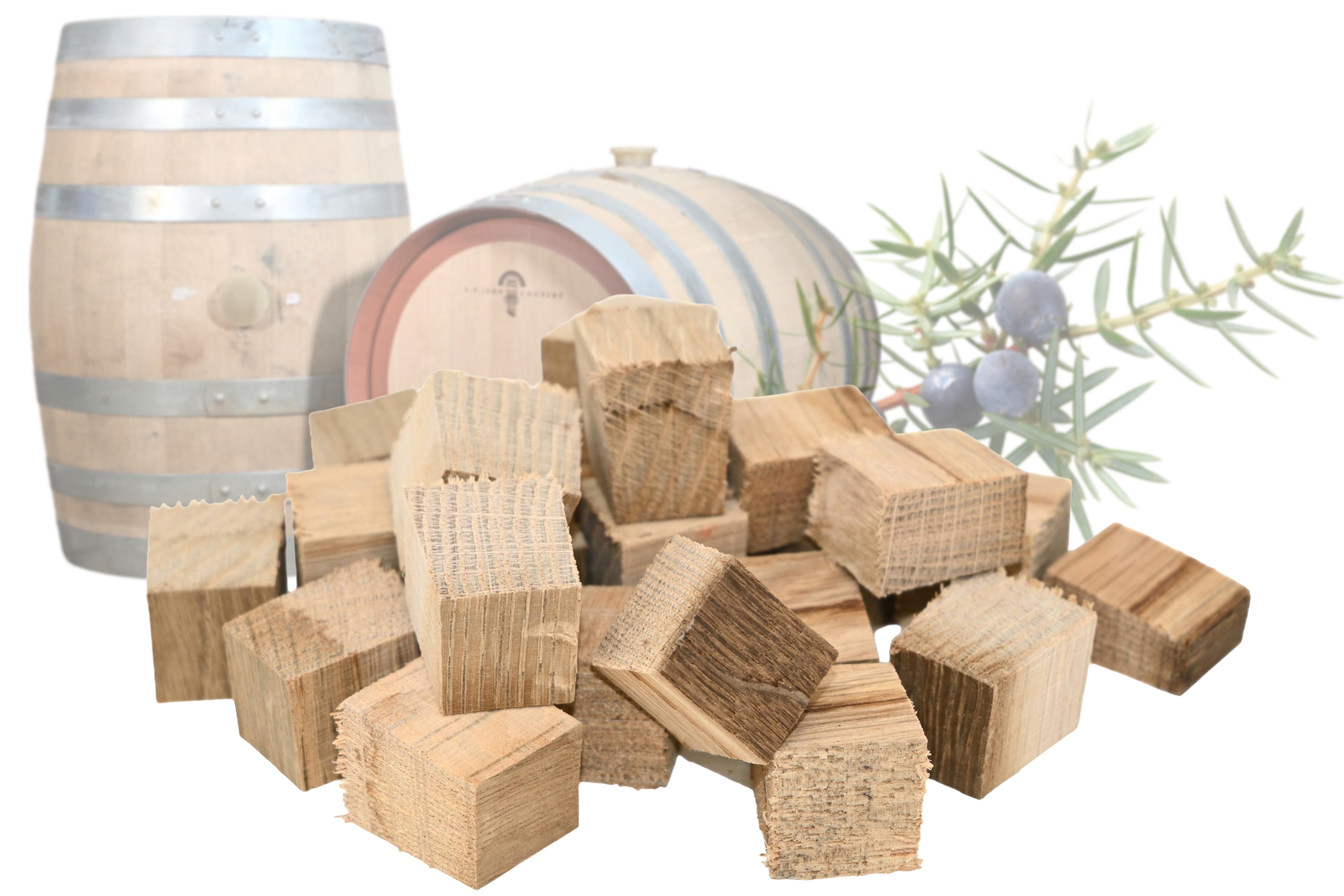Les cubes sont produits à partir de fûts de gin fraîchement vidés.
