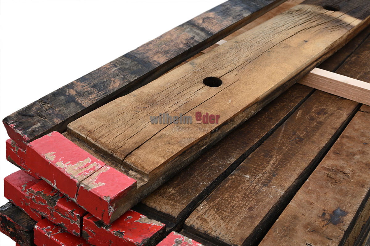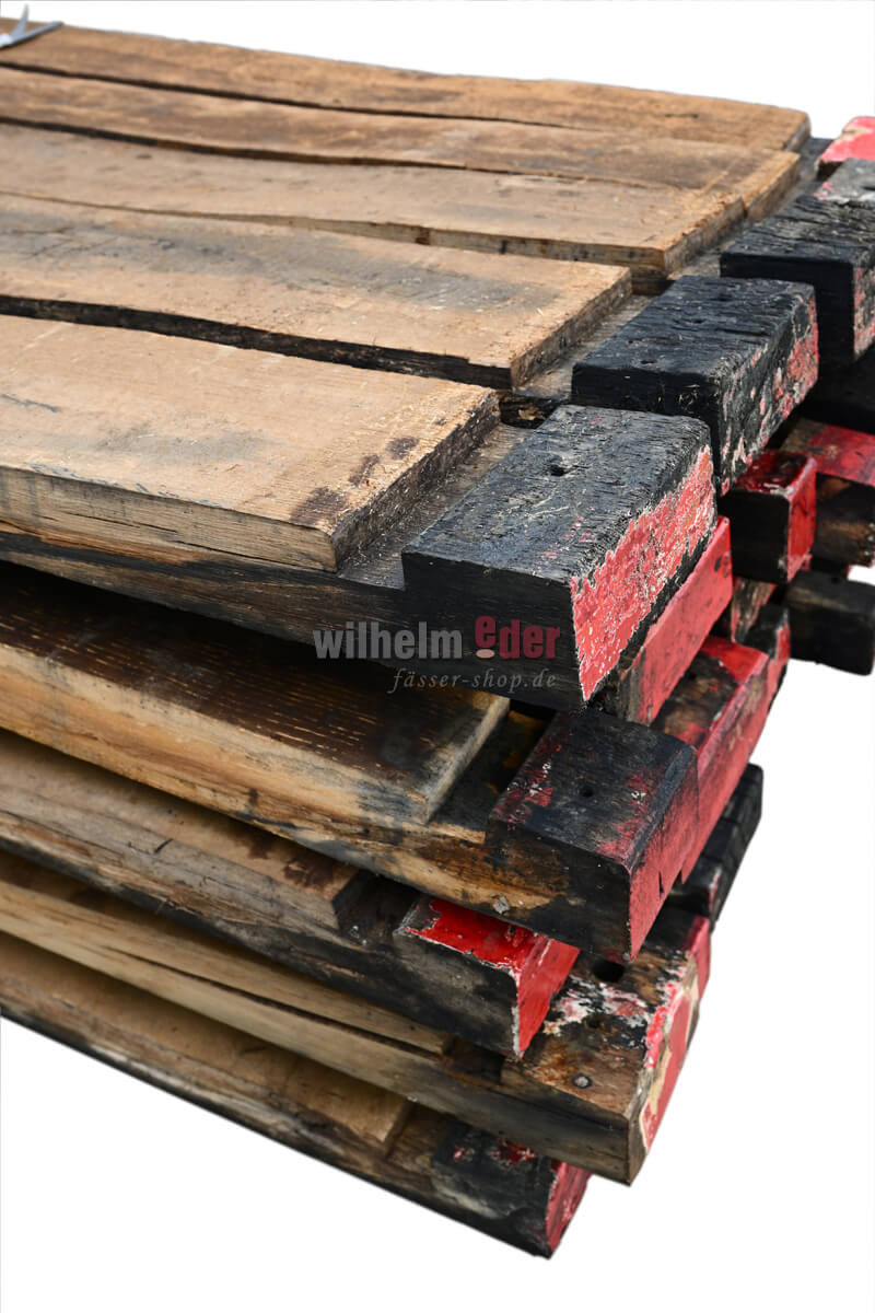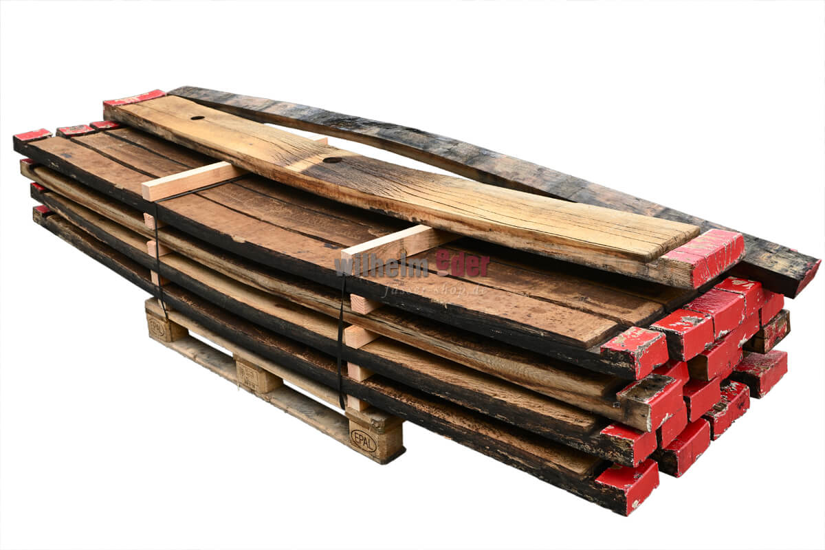 Douelles originales, de tailles et d'optiques différentes. Les douelles sont très bien adaptées pour attirer l'attention sur la décoration ou pour permettre aux bricoleurs de construire leur propre mobilier. Il n'y a pas de limites à la créativité. Les futs d'origine ont été stockées pendant des décennies dans des caves à vin sombres et humides. Chaque tonneau de vin, et donc chaque douelle, raconte sa propre histoire, qui se reflète sous différentes couleurs. Il n'y a guère d'autre accessoire qui rayonne plus d'authenticité qu'une douelle usagée. Vous souhaitez plus d'informations ? Lisez l'article de notre blog à ce sujet. Vendu exclusivement non trié 30 pièces dans un ensemble. Expédition sur une palette Dimensions en cm env : Daubensorte Longueur Largeur Barrique 225 / 228 l 88 – 95 cm 4 – 10 cm Bourbon / Whisky 190 l 89 cm 4 – 10 cm Whisky 500 l 130 cm 4 – 10 cm Indice. Il n'y a pas deux portées identiques, chacune est unique. Les photos sont donc des exemples de photos. Les articles peuvent présenter des traces d'utilisation telles que de la rouille, des bosses, des fissures et des rayures. Les biens sont exclus de l'échange.