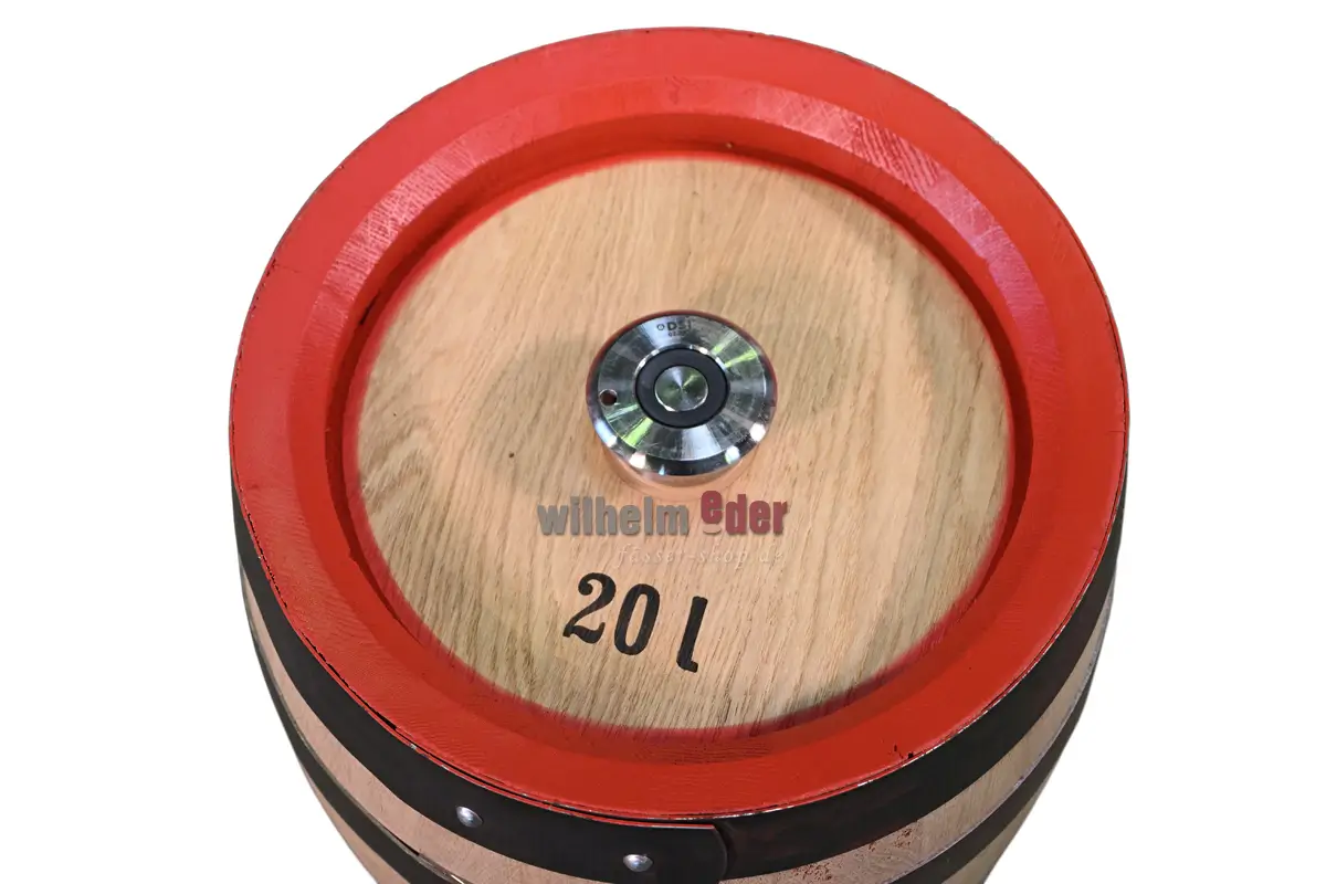 Le fût de bière de 20 l a été fabriqué en bois de chêne sec et le bord des têtes a été peint en rouge. Le fût est laissé naturel à l'extérieur et équipé d'une vessie intérieure en acier inoxydable pour le remplissage de kegs.