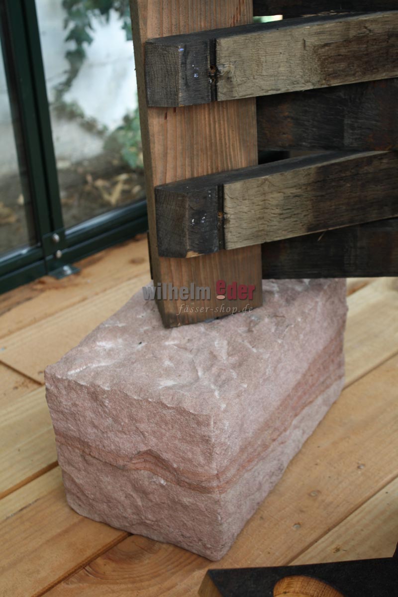 Le paroi est fabriqué d'environ 27-30 anciennes douelles de fûts de whisky en bois de chêne. Deux pierres de grès servent comme support et offrent une grande stabilité et pourtant une haute mobilité.