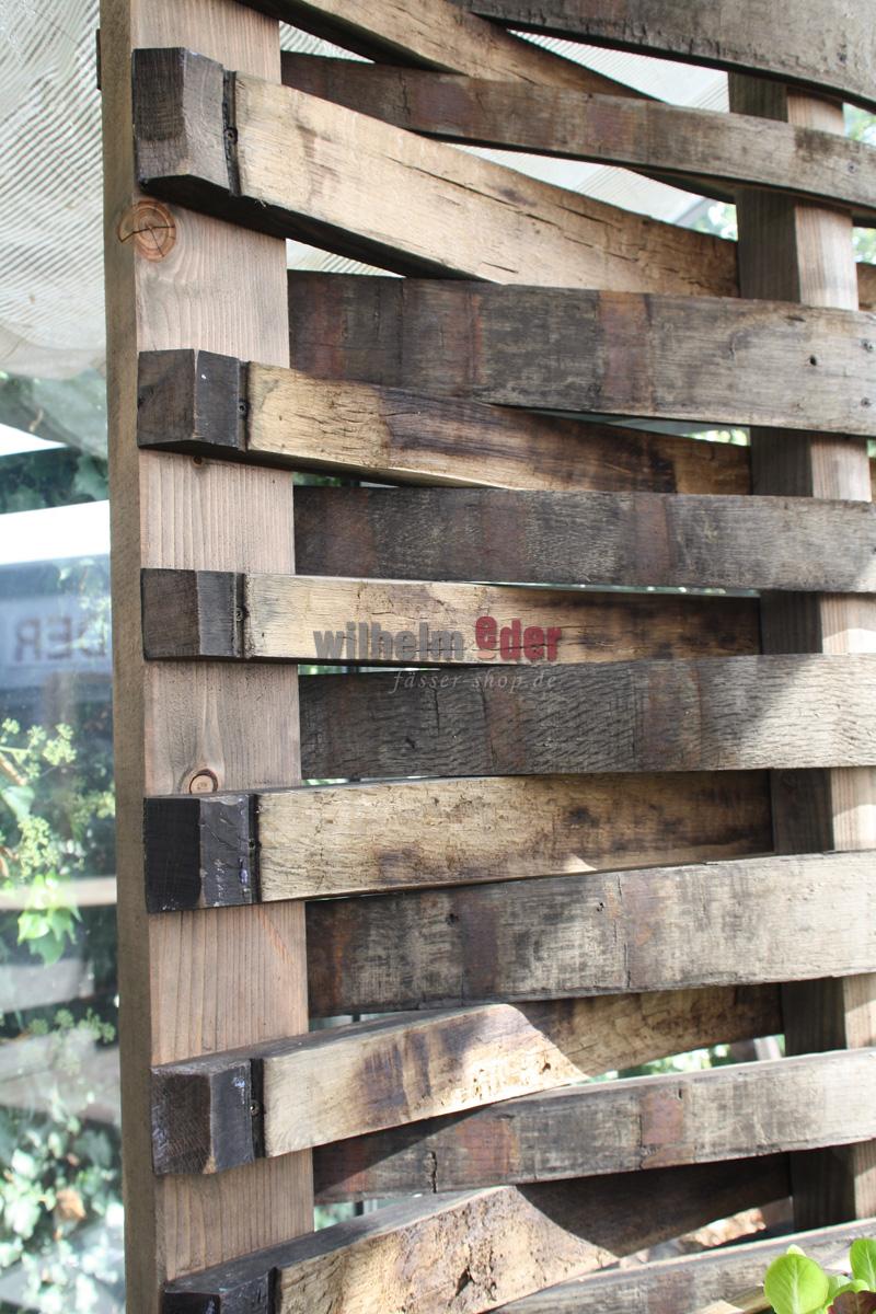Informations sur le produit "Paroi pare-vue fabriqué d'anciennes douelles de fûts de whisky"