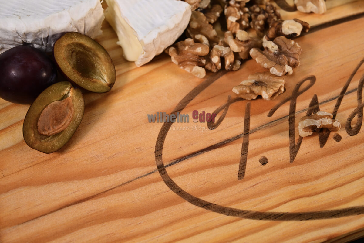 Le grain vif du noyer en fait le plus beau bois imaginable pour les meubles en bois et les accessoires de maison. À partir du bois restant de notre production de tonneaux, nous fabriquons, de manière tout à fait durable, des planches et des plateaux uniques en noyer pour le service élégant et la présentation des aliments. Nous n'utilisons pas de vernis pour le traitement de surface, mais plutôt de l'huile de pépins de raisin naturelle, car elle permet au bois de respirer et lui donne un éclat mat et soyeux. Au fil du temps, répétez ce processus de huilage. Lavez brièvement la planche à l'eau chaude si vous y avez mis de la viande transformée, du poisson, des oignons, etc. Veuillez la laver des deux côtés, sinon la planche risque de se déformer. Pour le séchage, veuillez le placer sur le bord et bien ventilé afin qu'il puisse sécher uniformément. Si des odeurs désagréables sont absorbées par la noix, vous pouvez les neutraliser avec un peu de bicarbonate de soude.