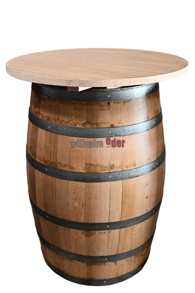 Très belle barrique claire d'occasion de 225 l en bois de chêne de premier choix, équipée de pneus noirs. Les tonneaux peuvent très bien être utilisés comme table haute, comme décoration ou comme présentoir. Les pneus galvanisés sont en partie recouverts d'un peu de rouille volante et le fût convainc par son aspect naturel et clair. Les fûts sont techniquement en bon état, mais ne sont plus adaptés à l'usage alimentaire. Avant d'être expédiés, ils sont nettoyés à haute pression et les pneus sont solidement fixés. Nos fûts décoratifs sont principalement destinés à une utilisation en extérieur.Si vous souhaitez néanmoins placer le tonneau dans des pièces chauffées, nous vous recommandons vivement de faire coller les douves par nos tonneliers. (A commander sous Accessoires). C'est la seule façon de garantir la stabilité de votre tonneau pendant longtemps.Chaque fût de chêne est unique. Différentes colorations sont issues du précieux contenu qui les a stockées. Les petites entailles dans le bois ou les petites bosses ne sont pas des défauts de qualité, mais plutôt déterminées par la nature de la construction et l'utilisation antérieure des barils. Presque aucun autre meuble ne diffuse autant d'authenticité, d'esprit et d'atmosphère de bien-être comme un tonneau en bois, chacun racontant une histoire différente des temps anciens. Lors du choix de l'emplacement, veuillez tenir compte du fait que, dans certaines circonstances, il peut y avoir un lessivage des tanins ou des résidus de l'élevage préalable. Si vous avez des questions sur l'emplacement de votre tonneau décoratif, nous nous ferons un plaisir de vous conseiller et de vous aider.