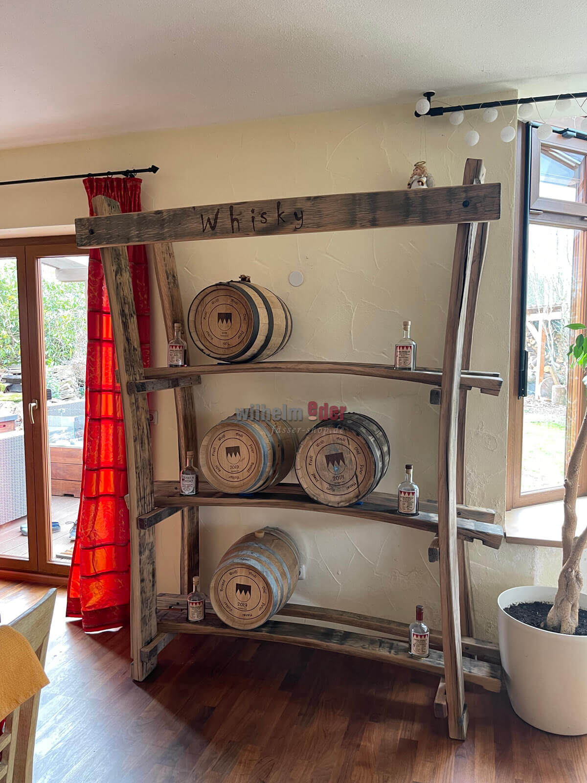 Produziert aus einem 300 l Eichenholzbarrique in Strandgut Optik gebeizt und mit Klarlack lackiert.