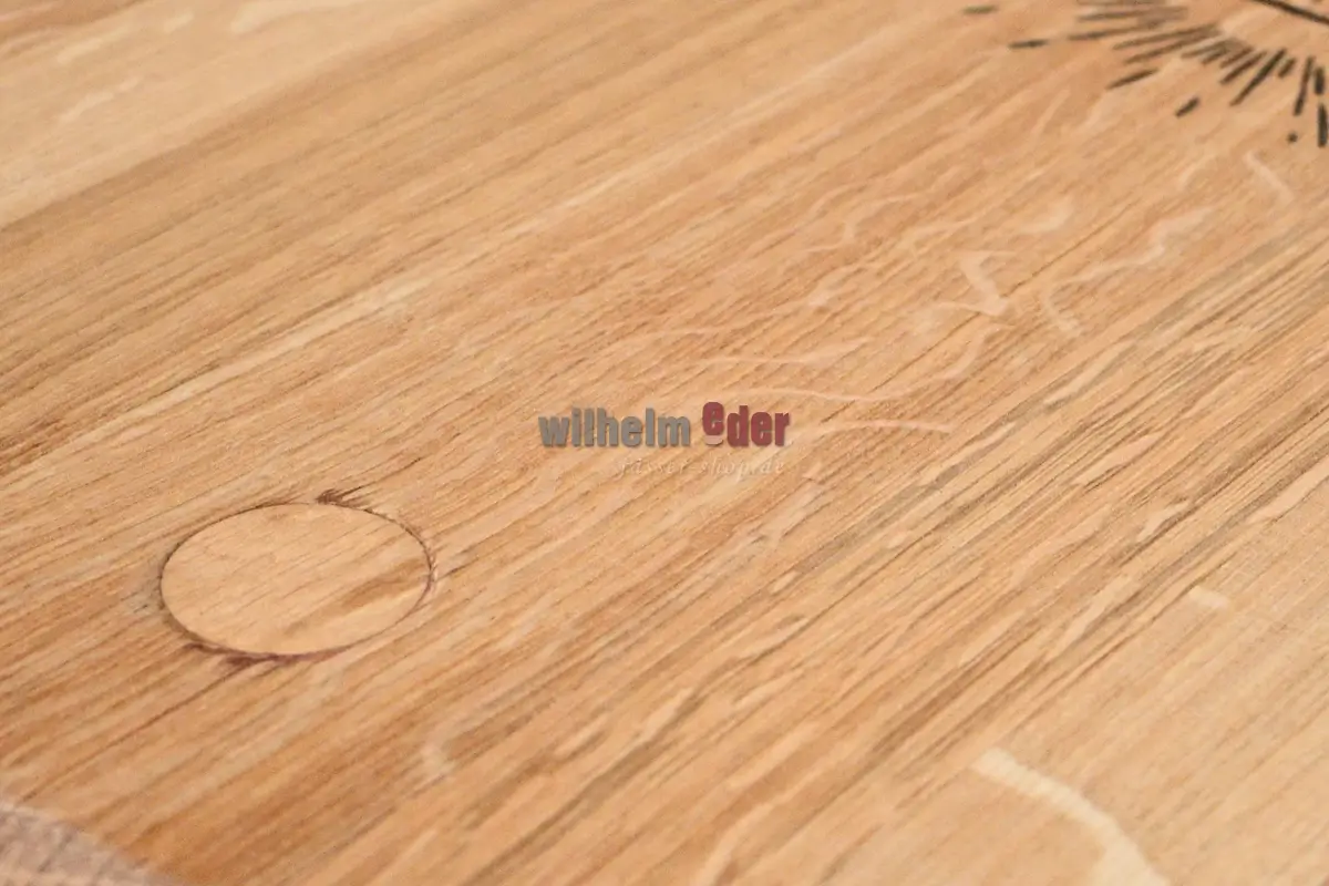 - Plateau en douelles de chêne collées (Tête de fût barrique), avec marquage laser en option (pas incl.)