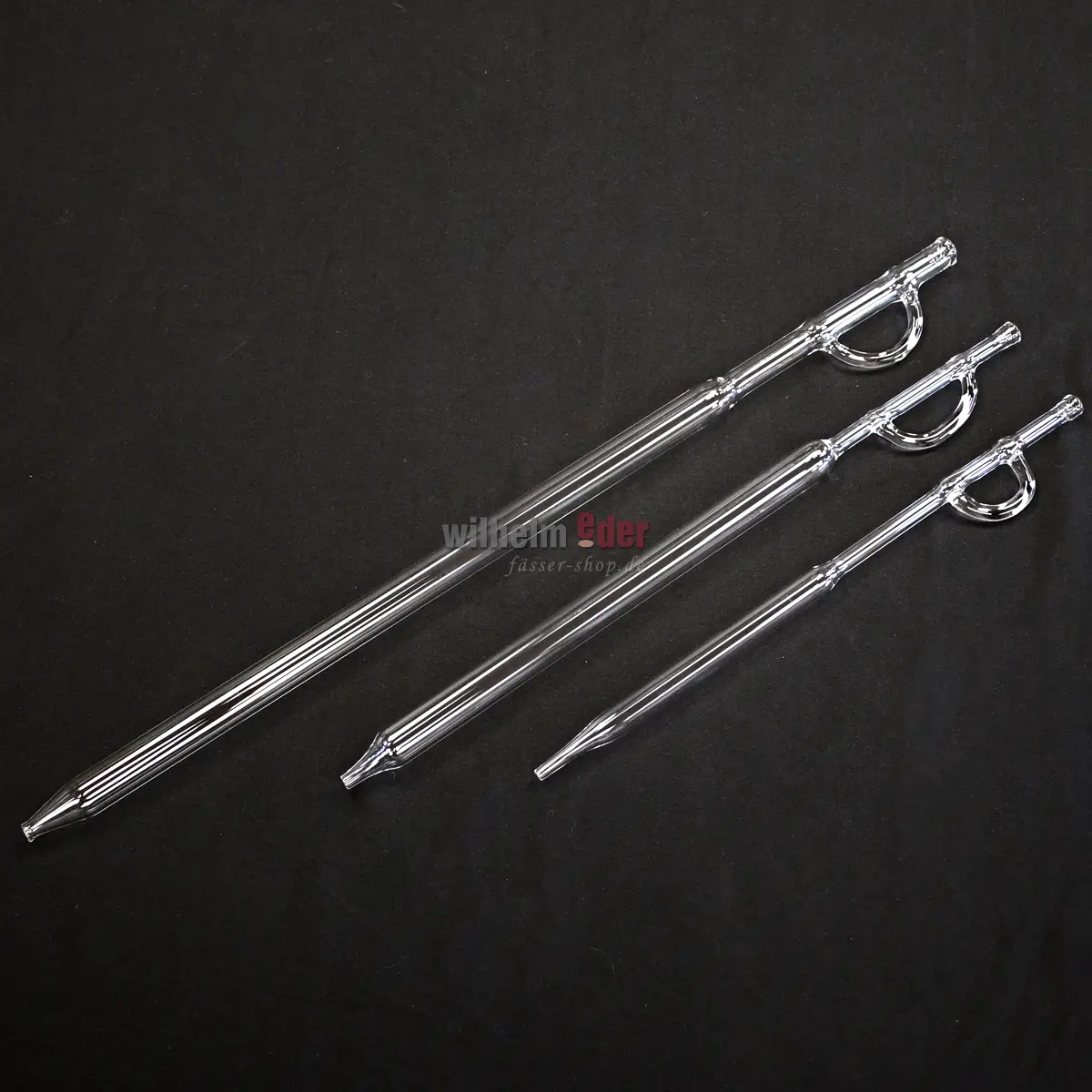 Tube de prélèvement en verre pour le prélèvement d'échantillons de vin dans le fût.
