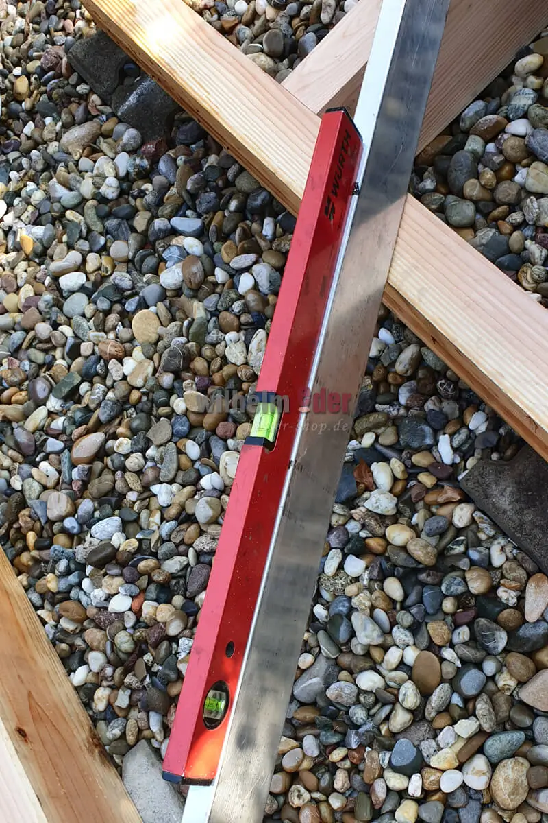 First we check the foundations for the vat, which we have excavated and filled with stones, set up the bearings and aligned them with a spirit level. Then it’s back to the truck to unload the valuable cargo. Even that was no easy feat. The bath tub was large and thus quite unwieldy to unload. Since the road was also not particularly wide, we had to ask one or the other motorist to turn and take a different route. After unloading, however, the most difficult part begins…